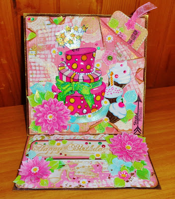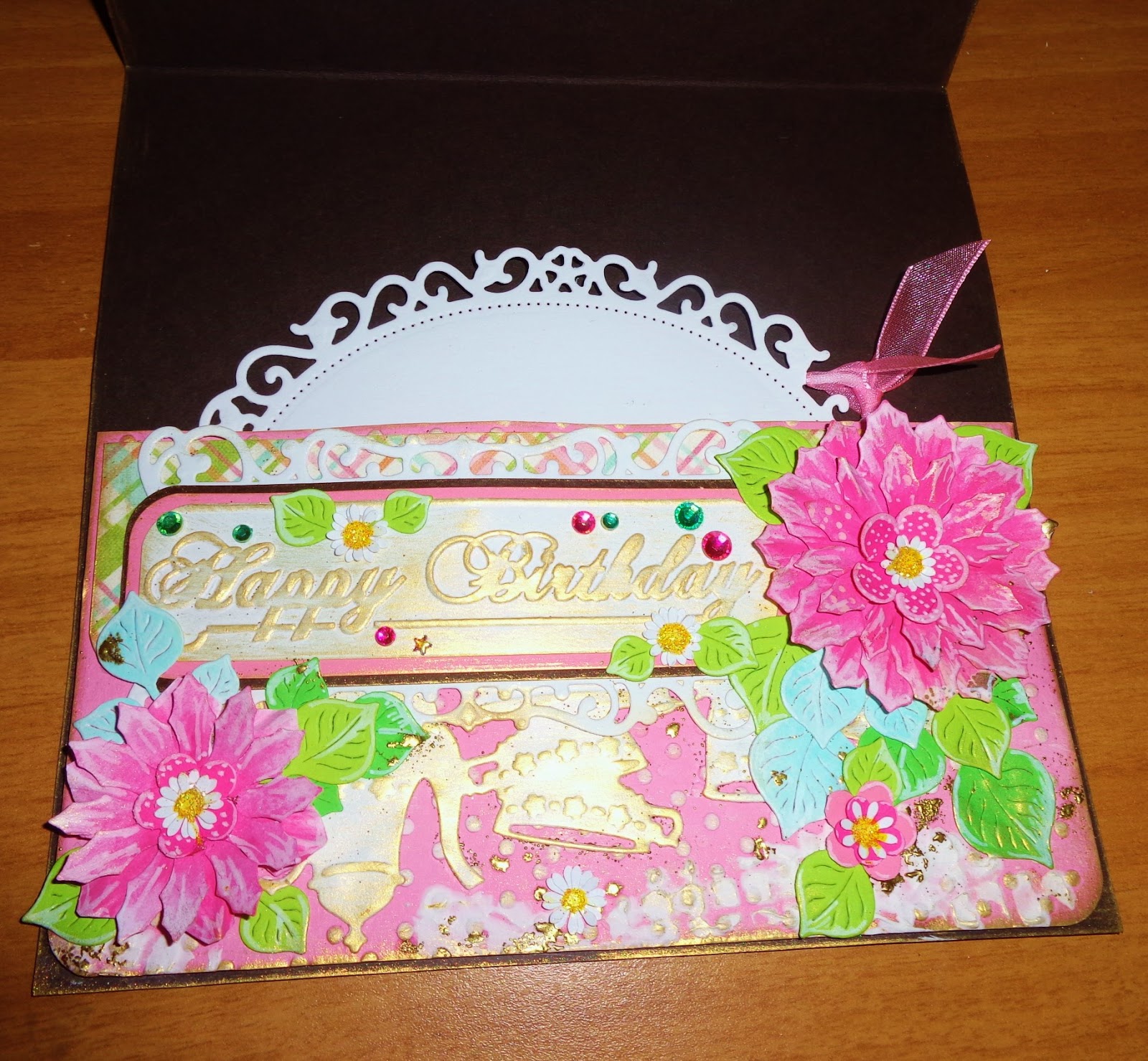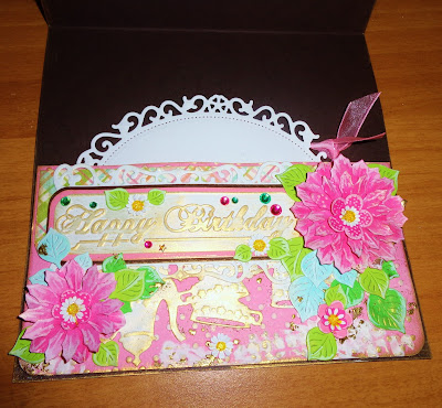 Самата картичка е с няколко подвижни тагчета,интересно сгъване и скрити джобчета, както за посланието, така и за паричен подарък.